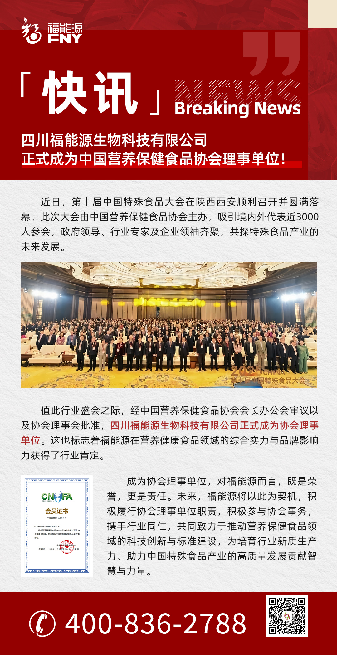 快讯 | 四川福能源生物科技有限公司正式成为中国营养保健食品协会理事单位!